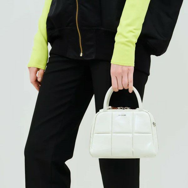 ふかふかな素材を格子状に配したディテールが特徴的なシリーズです。光沢感のあるダウン調の素材を使用し、ボウリングバッグをブガッティ型に落とし込んだデザインで、クラシカルな印象に仕上げられています。