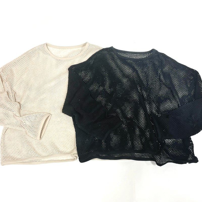 メッシュプルオーバーロングスリーブTシャツ。