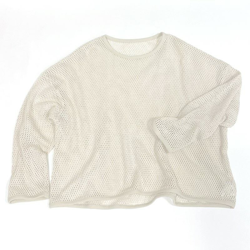 ほど良い透け感があるコットンメッシュ素材を使用しており、クロップド丈+ドロップショルダーでリラックス感◎