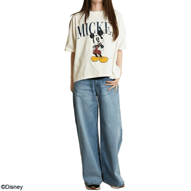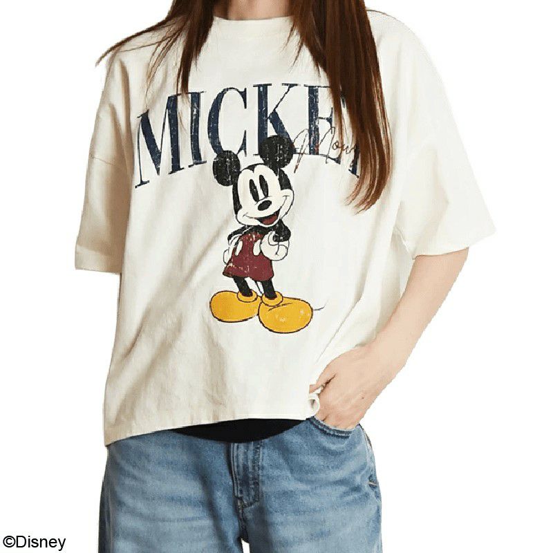 フロントとバックにピグメント加工を施した”ミッキーマウス”のプリントをデザイン。懐かしいデザインの”ミッキーマウス”とヴィンテージ感のある加工で、ディズニー好きはもちろん、古着好きやシンプルコーデにプラスすると、オシャレな着こなしに仕上がります。