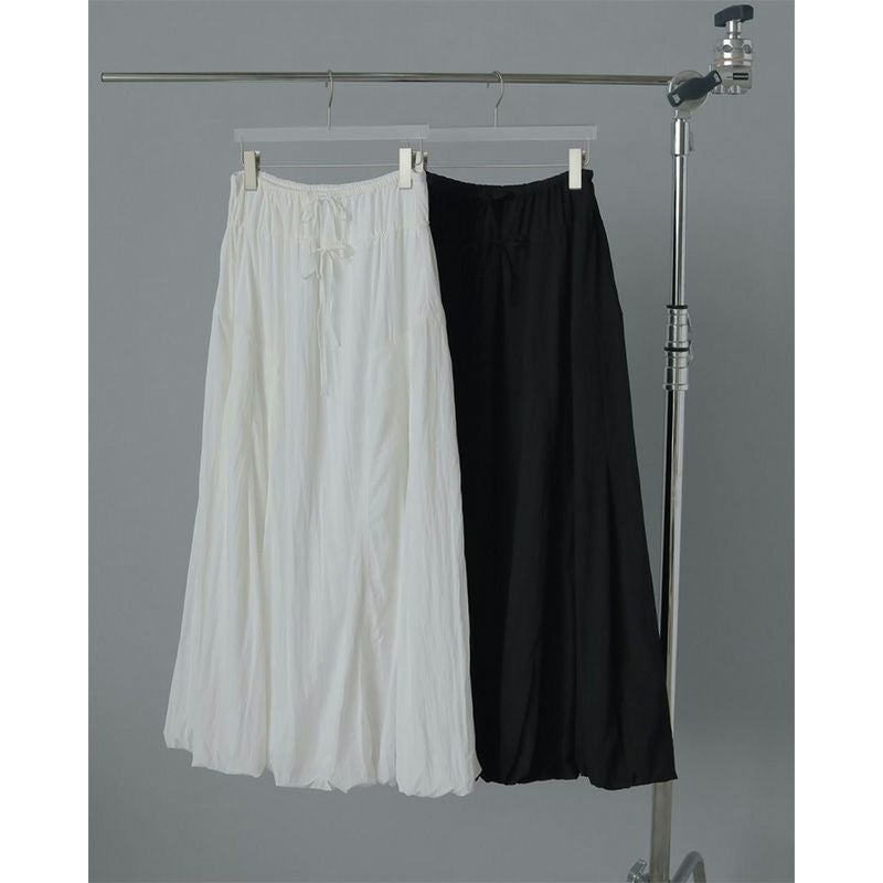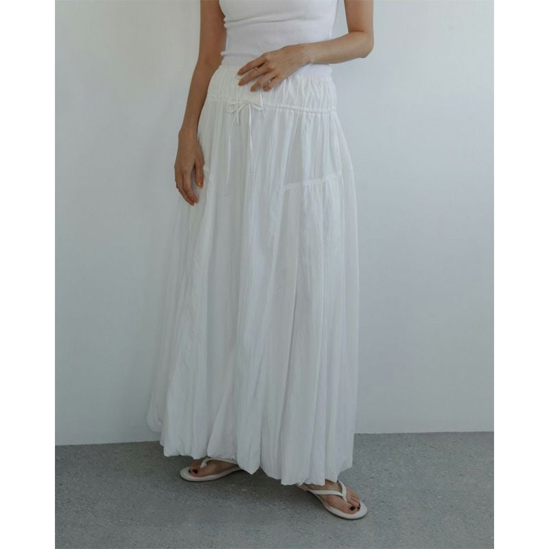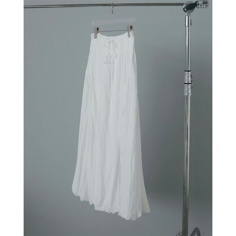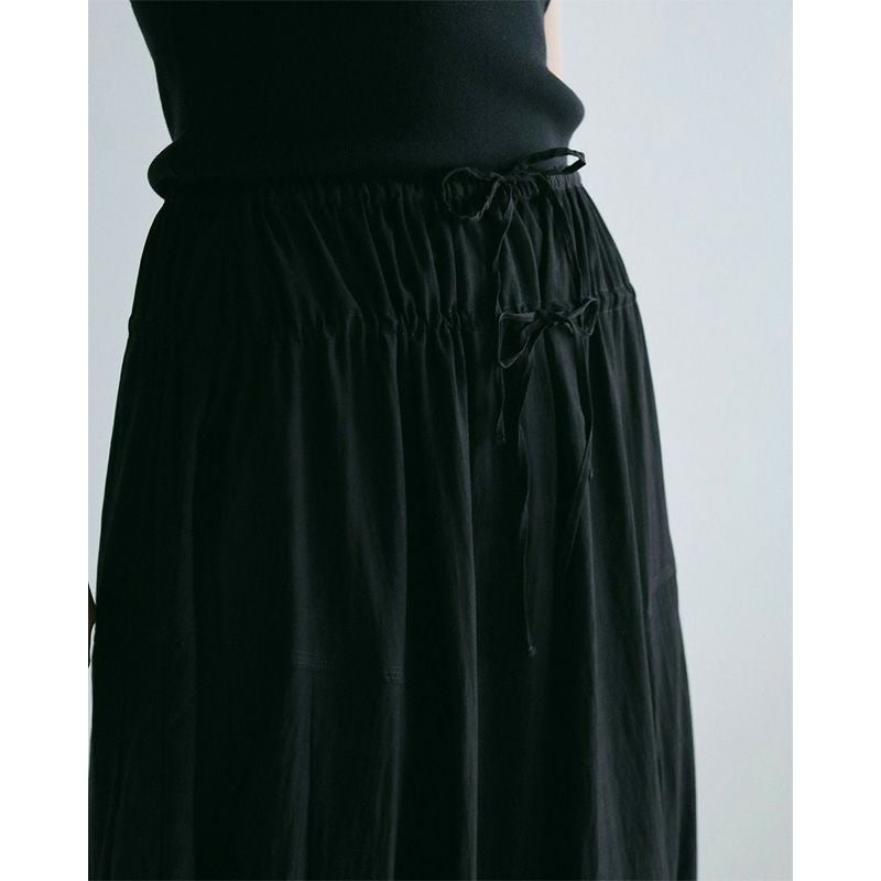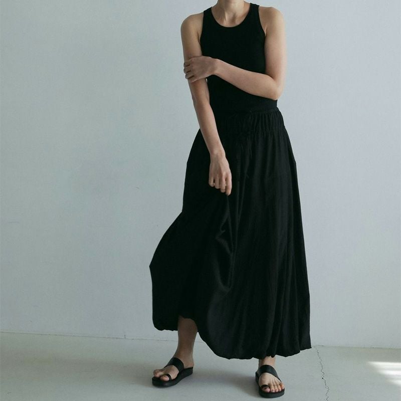 空気を纏うような軽やかさとディティールにこだわったバルーンスカート。たっぷりと贅沢に生地を使って生み出すボリュームシルエットが歩くたびにふんわりと揺れ、抜け感あるエフォートレスなムードを演出します。ウエストには2段にリボンをあしらい、サイズ調節が可能なのはもちろん、トップスをインした際もスタイリングのアクセントに。シンプルな中にもセンスが光る一着。日常に優しく溶け込みながら装いにさりげない個性を添えてくれます。どんなコーデにも馴染むブラックとホワイトの2色展開。夏のサンダルスタイルにも映える一枚です。