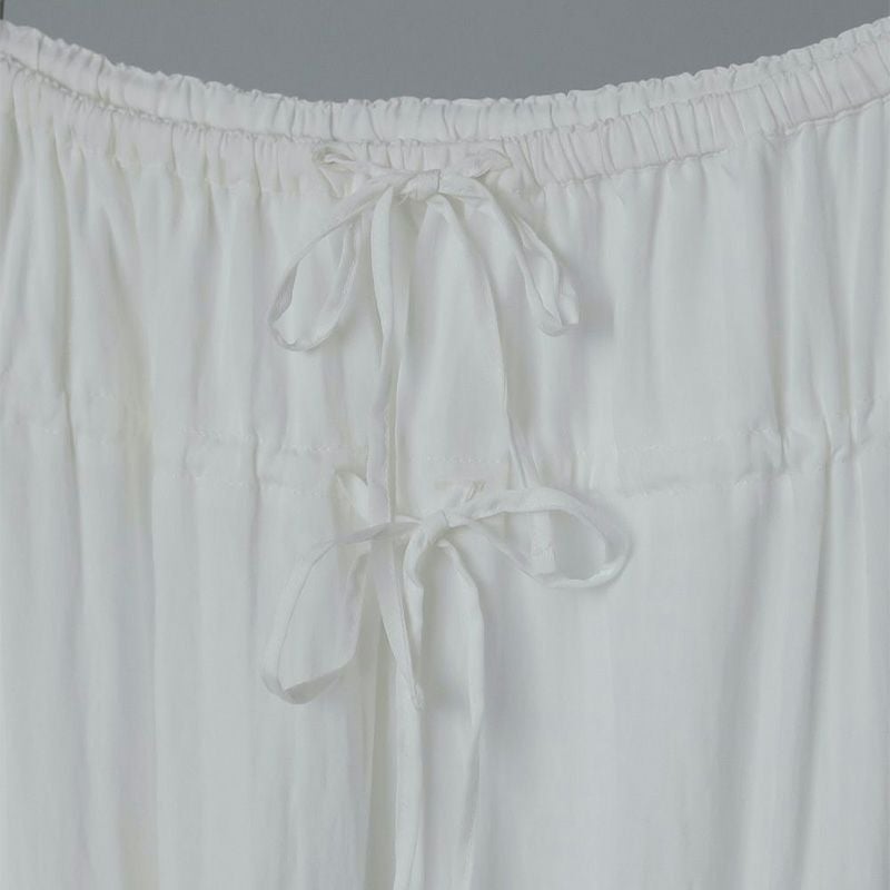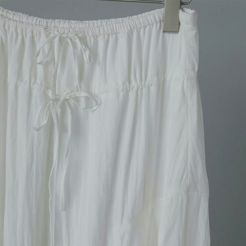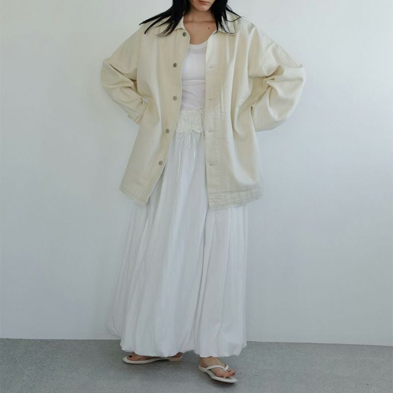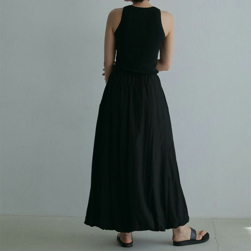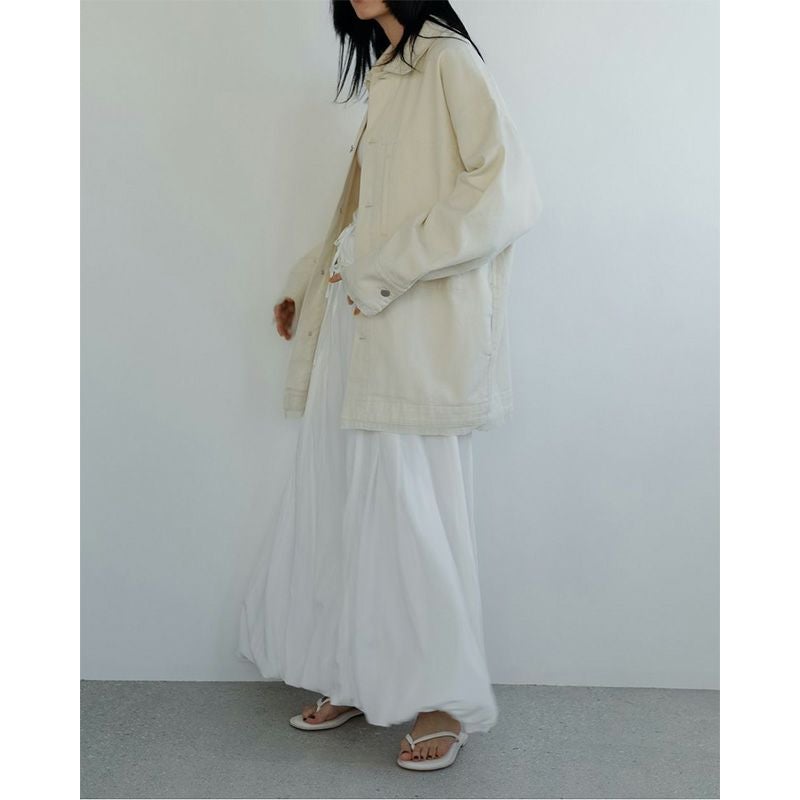 空気を纏うような軽やかさとディティールにこだわったバルーンスカート。たっぷりと贅沢に生地を使って生み出すボリュームシルエットが歩くたびにふんわりと揺れ、抜け感あるエフォートレスなムードを演出します。ウエストには2段にリボンをあしらい、サイズ調節が可能なのはもちろん、トップスをインした際もスタイリングのアクセントに。シンプルな中にもセンスが光る一着。日常に優しく溶け込みながら装いにさりげない個性を添えてくれます。どんなコーデにも馴染むブラックとホワイトの2色展開。夏のサンダルスタイルにも映える一枚です。