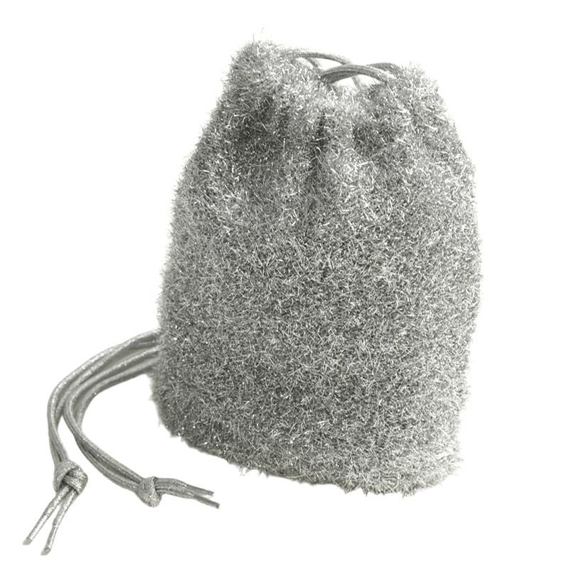 お洒落さんはみんな持っている巾着バッグと、トレンド真っただ中のメタリックやラメの良いとこどりをしたグリッターフェザーの巾着バッグは存在感ありつつも、派手すぎず、どんなスタイリングにも合わせやすく、使いやすさ抜群のアイテムです。