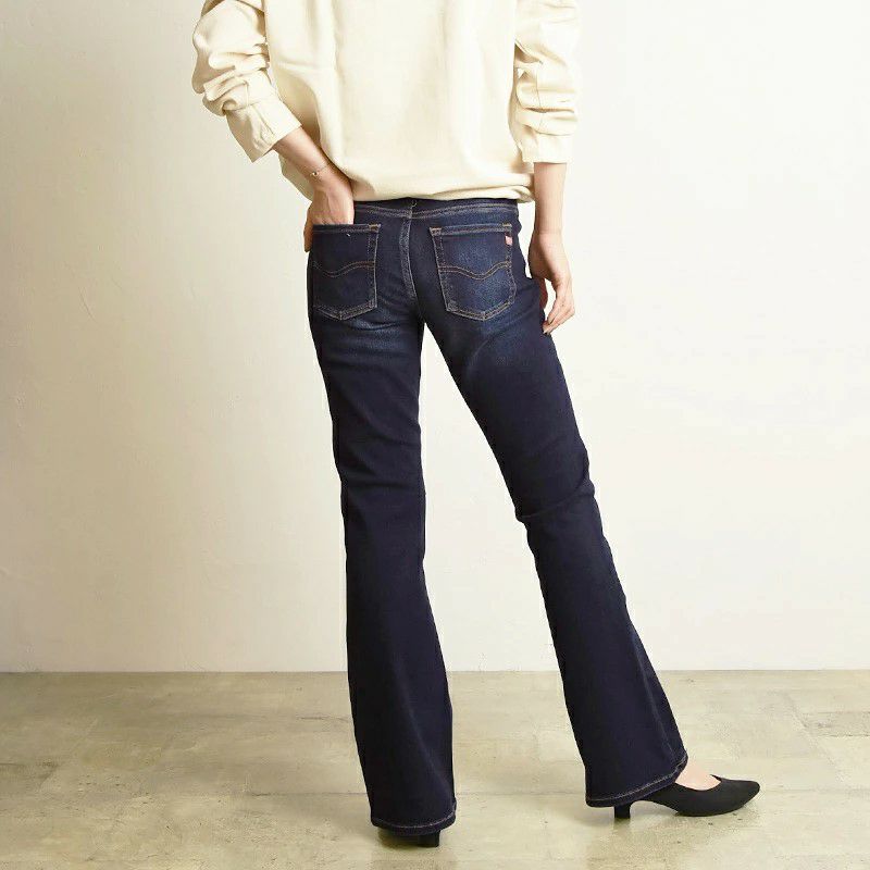 緩やかに広がる絶妙ラインで長い脚を印象付けるブーツカットシルエットのデニムパンツ。