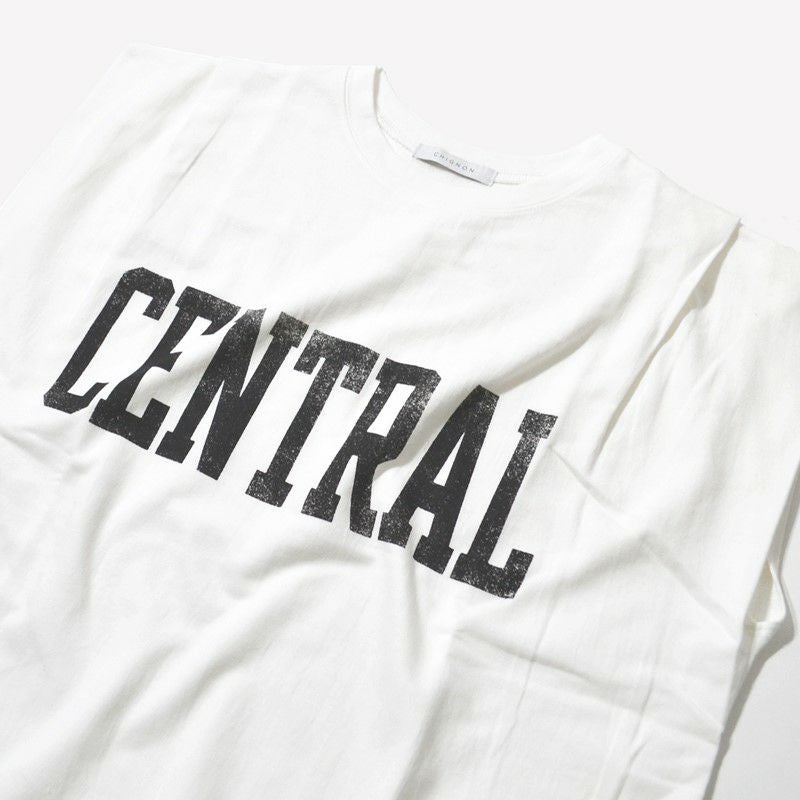 かすれたカレッジロゴプリントがヴィンテージ感漂う大人のノースリロゴT。