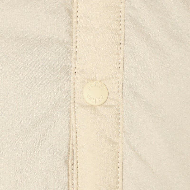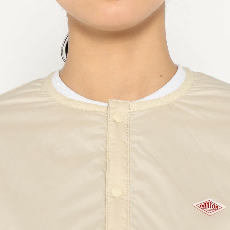 ミドルレイヤーとしても活用できる、ジャストサイズの中綿入りのインサレーションカラーレスジャケット。ノーカラージャケット