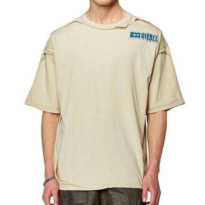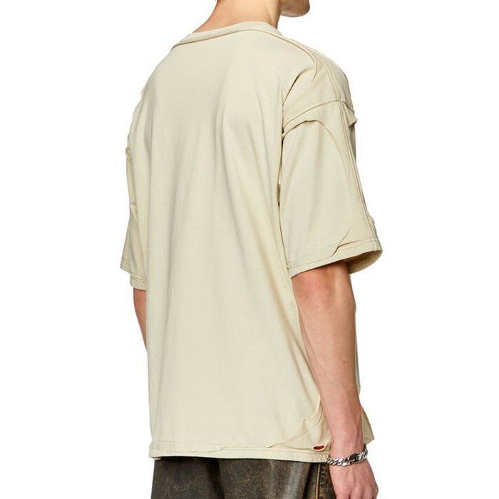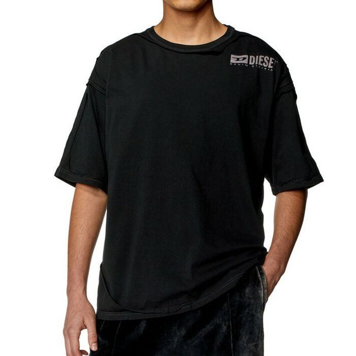 DIESELを代表するテーマの1つである。ダブルイヤー&ピールオフエフェクトのリラックスフィットTシャツ。
