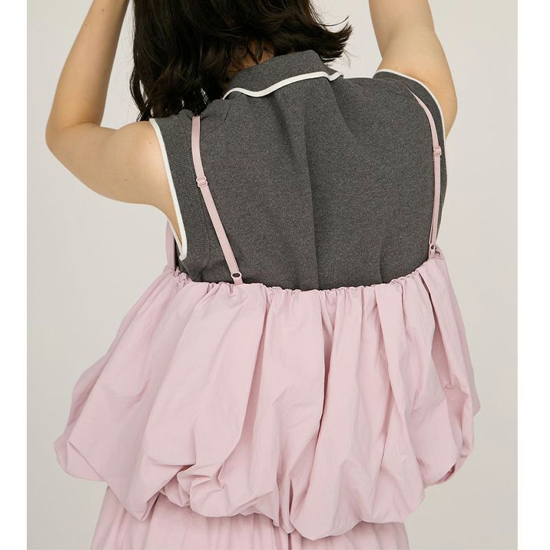 接触冷感の軽量ナイロン素材を使用したバルーンシルエットのビスチェ。