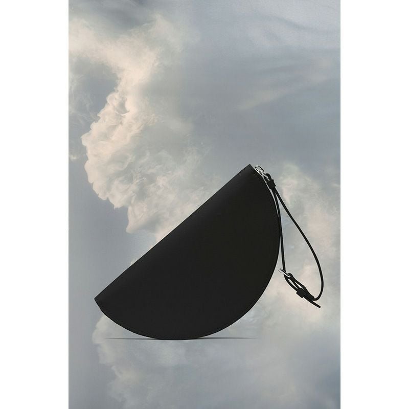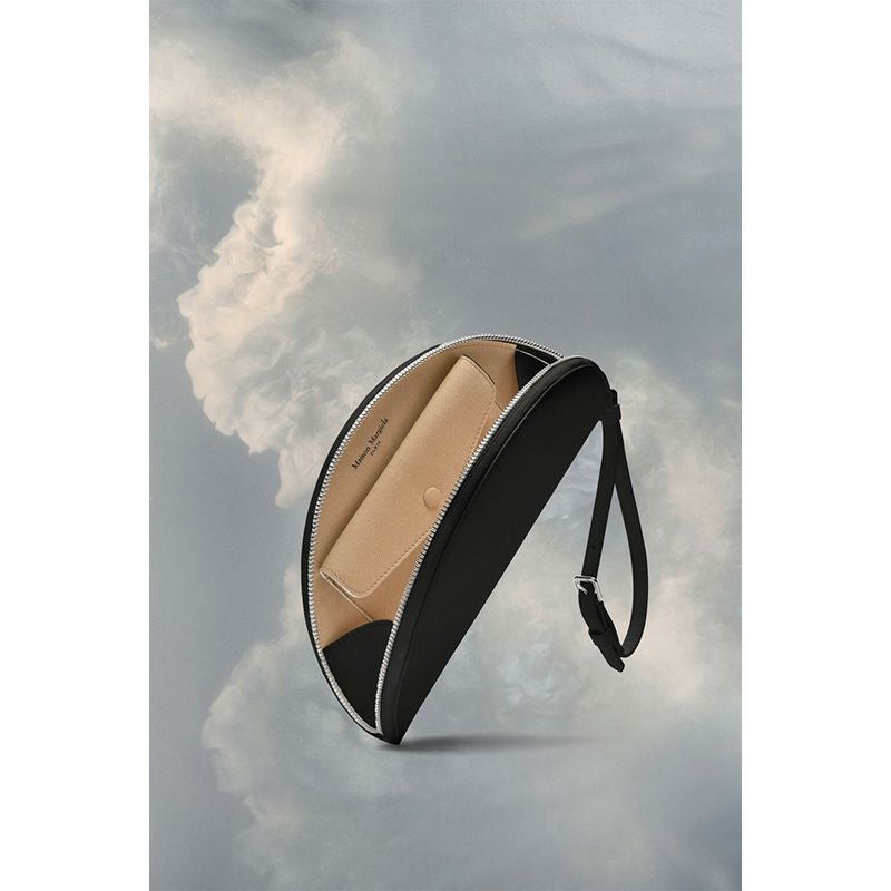サフィアーノレザーを使用した、ジッパー開閉のレザーポーチ。フロントにMaison Margielaのシグネチャーである4ステッチが入っており、その反対側にラベルが付いています。