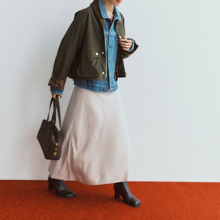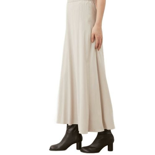 上品でマットな光沢と、柔らかく落ち感のある素材で、歩くたびに動きをキレイに見せてくれるスカート。