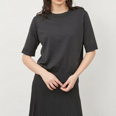 大人しすぎず、大胆過ぎない、絶妙なラメ感にこだわって仕上がっています。シンプルなデザイン、コンパクトなシルエットは合わせるボトムを選ばずバランスがとりやすいです。デニムを合わせてカジュアルにも、きれい目ボトムスで上品にも着られます。