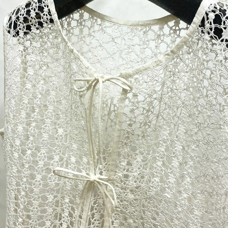 通常のクロシェよりもより軽く、ざっくりとした編み方で暑い夏場でもスッキリ合わせられます。