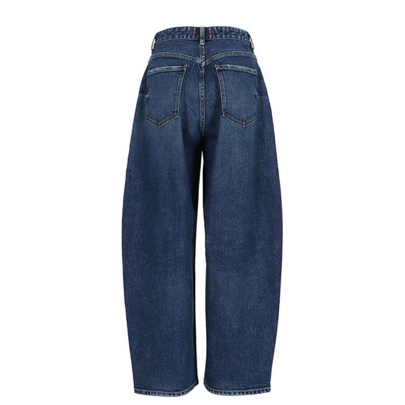 ボリュームのあるシルエットが魅力的で、これ一本でこなれ感が出せるデニムです。ハイウエストで、気になる腰回りはしっかりカバーしれくれて、スタイルアップ効果も抜群。シンプルなトップス合わせはもちろん、ハイウエストなのでショート丈のトップスとも相性抜群です。スニーカーにはもちろん綺麗めなサンダルとのスタイリングも◎。カイハラの3者混ハイパワーストレッチデニム地採用で、従来のポリウレタンストレッチより伸縮性も大幅にUPしました。