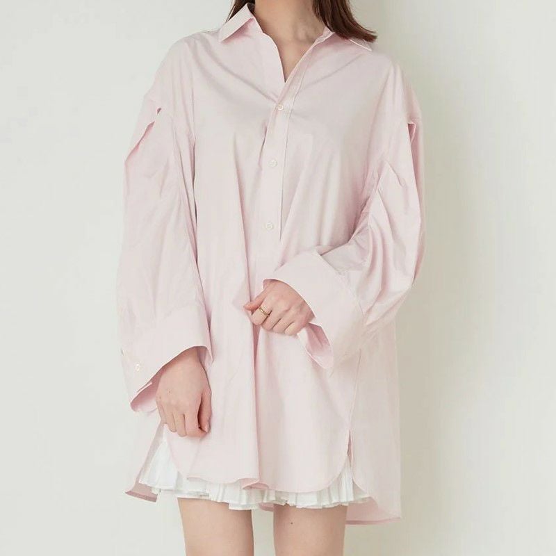 オーバーサイズシルエットでこなれスタイルを叶えるシャツミニワンピが完成。