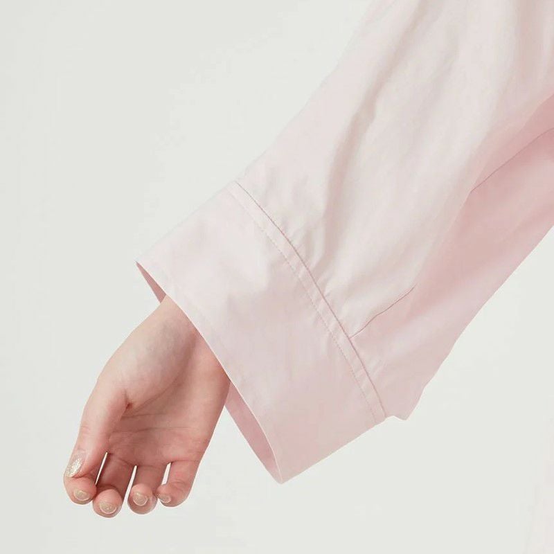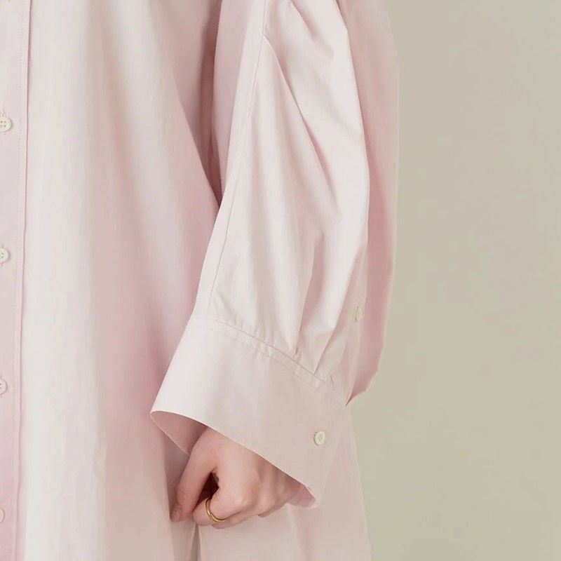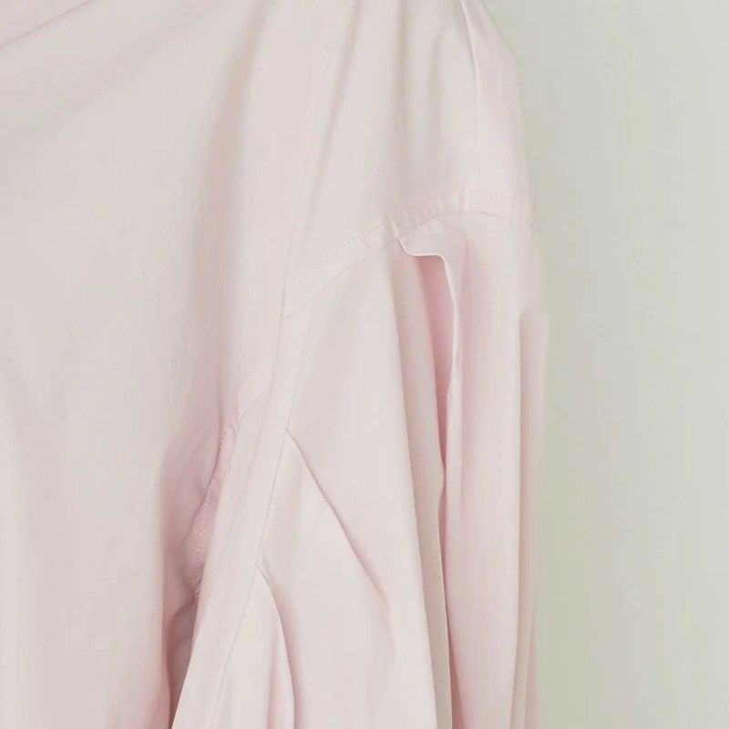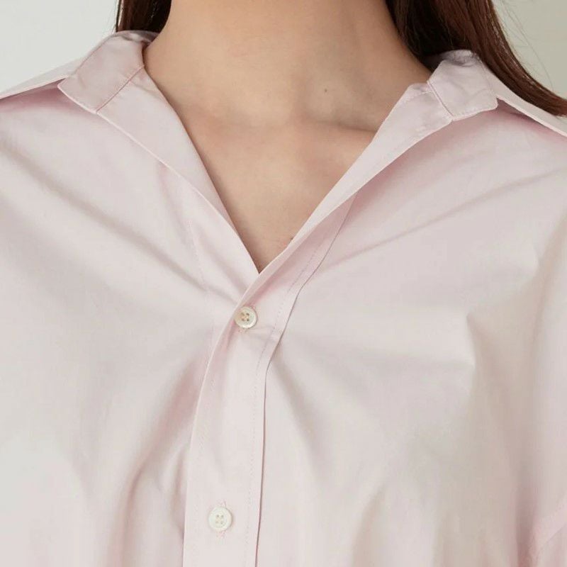 シルエットが崩れない程良いハリ感がありながらも、着心地も柔らかなコットン100%生地を使用。デコルテやうなじも綺麗に見せてくれる抜き襟のため、女性らしさもグッとUP。袖は幅広で腕の華奢見えも◎