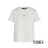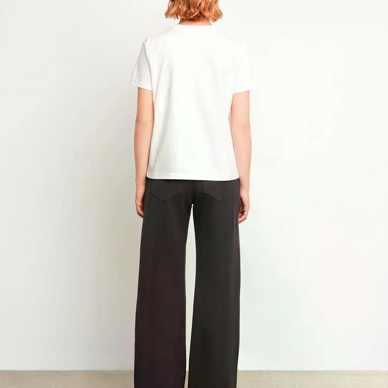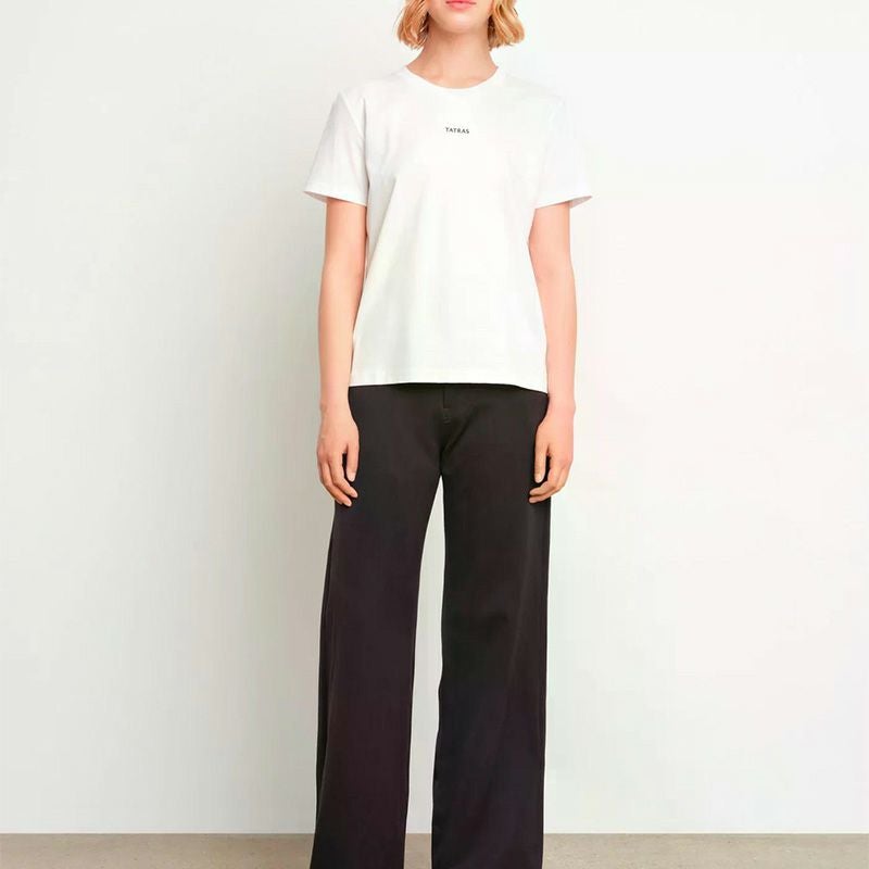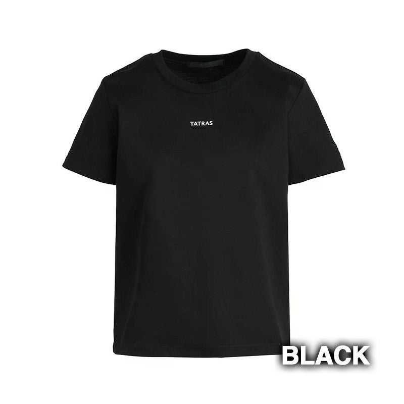 小さめのTATRASロゴを中央に配した、上品な表情のクルーネックTシャツ。