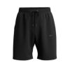 リラックス感のあるシルエットのスウェットショーツ。ダブルシルケット加工で毛羽立ちを抑えたオリジナルの裏毛素材を使用しています。裏に太番の糸を編み込んだ、膨らみとハリ感が特徴です。太ももにはメタルプレート調のブランドロゴを、バックスタイルのパッチポケットにはメタル風圧着プリントのクロスロゴをあしらっています。ゴム仕様のウエストで、ゆったりとした着心地ながらも、上質感のある一着です。