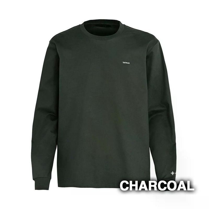 胸元のTATRASロゴ、袖口のブランドアイコンがポイントとなったロングスリーブTシャツ。