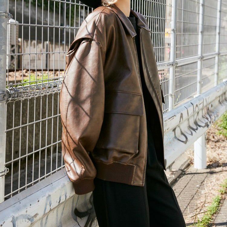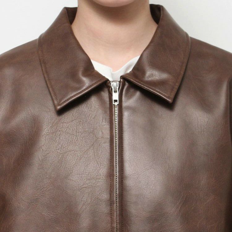 ヴィンテージライクなデザインを踏襲しメンズライクな雰囲気に仕上げられたフェイクレザーブルゾン。