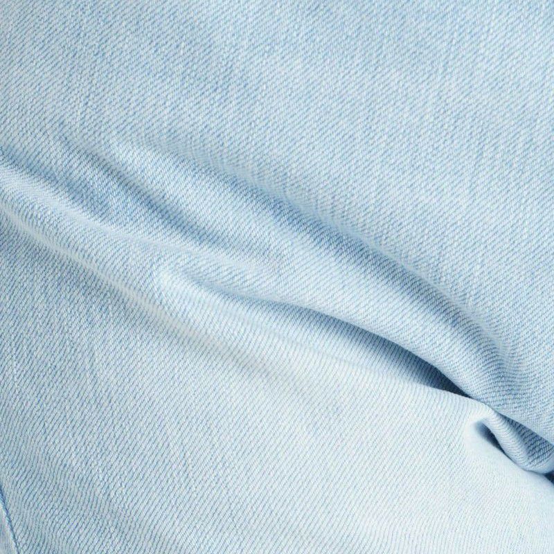 綺麗なサックスカラーと色落ち部分のホワイトとのコントラストが効いた爽快な1本。股上が深めだとお腹回りの間延び感が気になりますが、ヒゲやスリがしっかり入っているので立体感があり、気になるお腹回りをカバーしてくれます。
