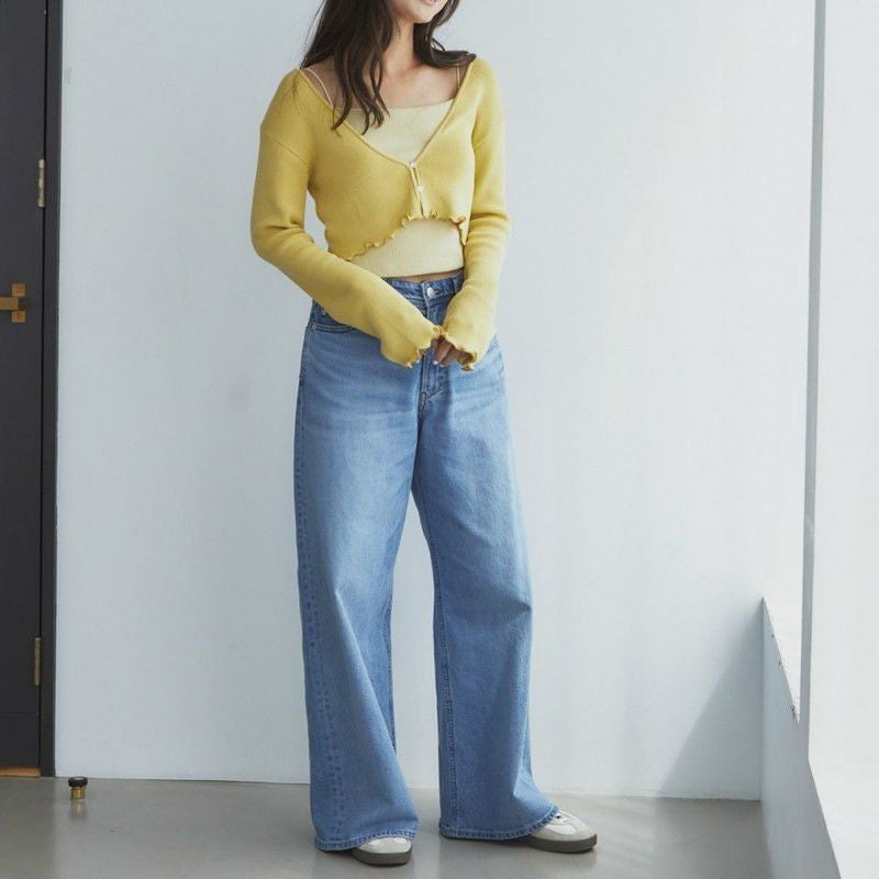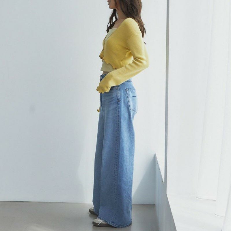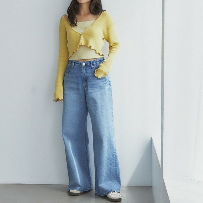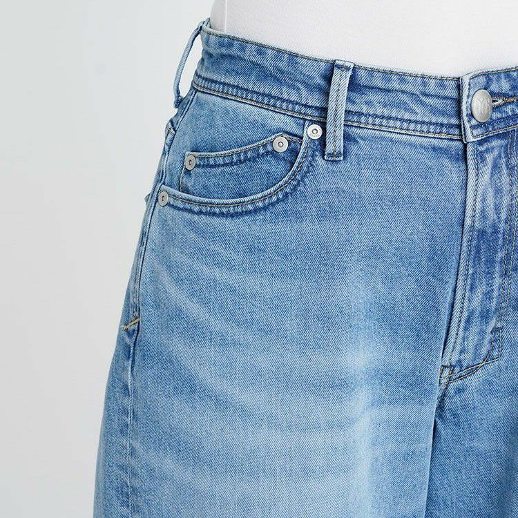 膝巾/裾巾が広く、ヒップから裾までがまっすぐなラインが特徴のシルエットです。ウエストをローライズに設定することで、ボリューム感の中に抜け感が生まれ、穿きやすく洗練された印象を与えてくれます。
