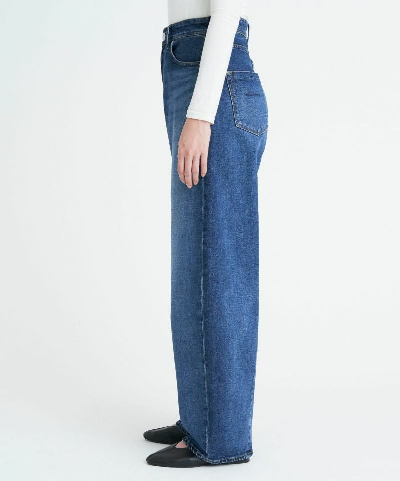 裾に向けて大きくカーブした作りのカーブテーパードLAURA(ローラ)。レッグラインは脇のカーブと裾のダーツで立体的に膨らむように計算され、内側のラインはシャープにすっきりさせています。腰付近はすっきりとフィットして女性らしく、脇のカーブも高く持ってくることで、トレンド感をだしながら足を長くきれいに見せるシルエットとなっています。シンプルな装いにもこなれた着こなしに見せてくれます。