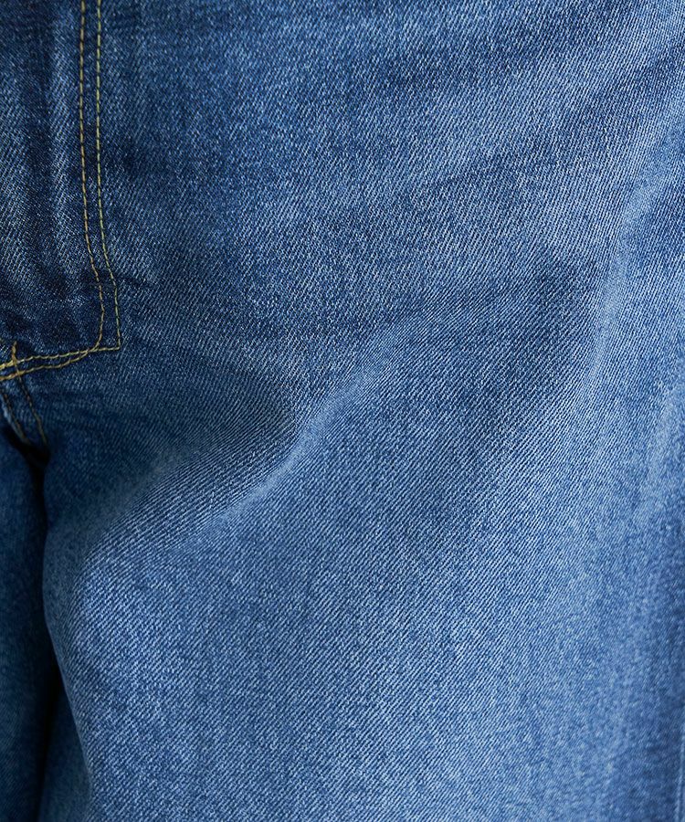 定番的に使いやすい中間色ブルー。全体的にUSED感は出しながらも、ベースカラーを濃い目に残していることで、クリーンなコーディネートにも馴染みやすい雰囲気に仕上げました。