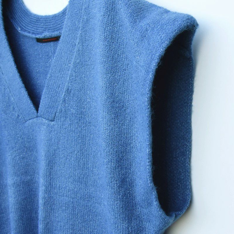柔らかく、温かい、程い厚みのあるカラーニットベスト。