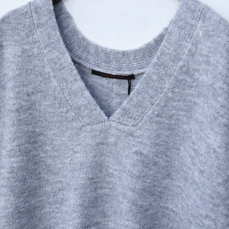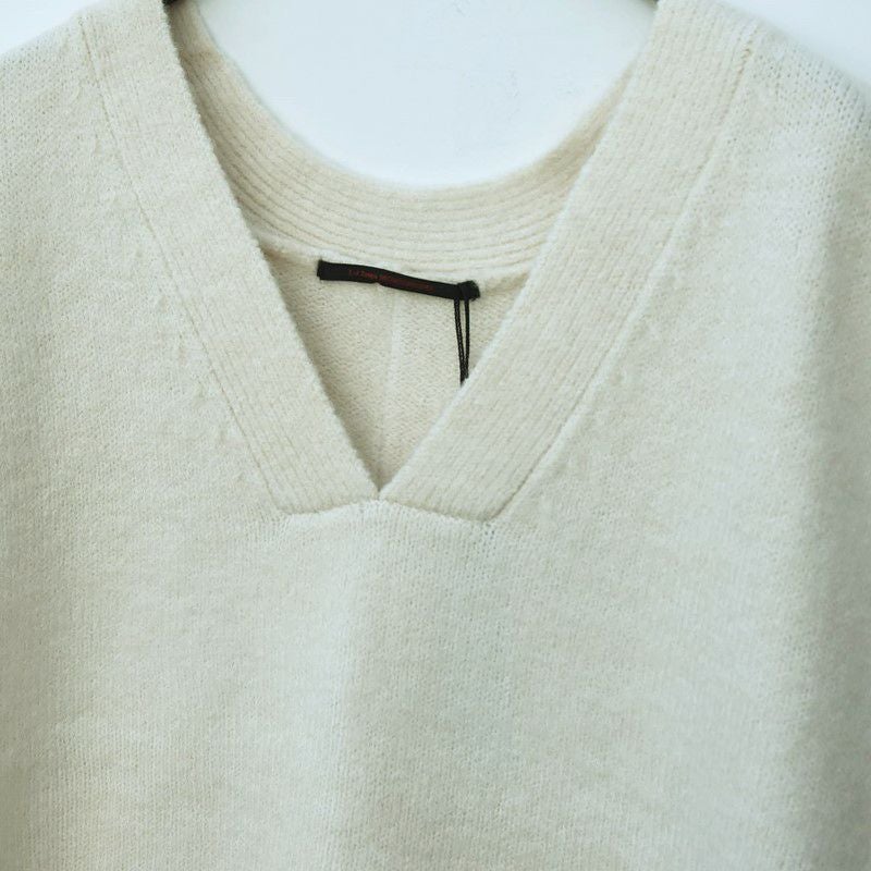 ゆったりしたルーズシルエットですが、フロントの深めのVネックがスッキリ見えしてくれます。