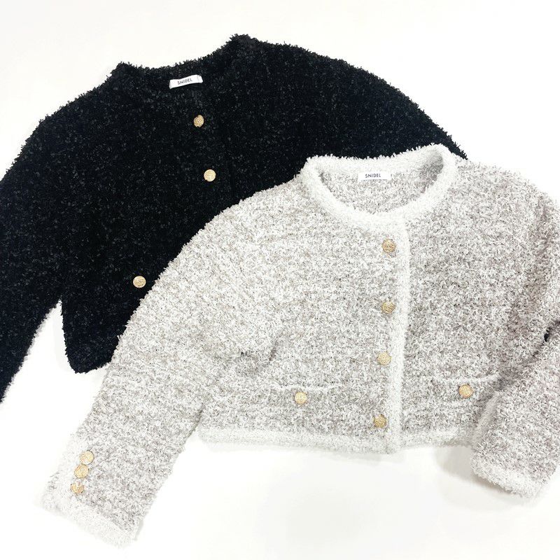 他の画像を見る ショート丈が可愛いラメツィードジャケット 【SNIDEL/スナイデル】ラメツイードカーディガン・SWNT234200 販売価格 ¥ 12,980 税込 在庫切れ カートに入れる お気に入りに登録する