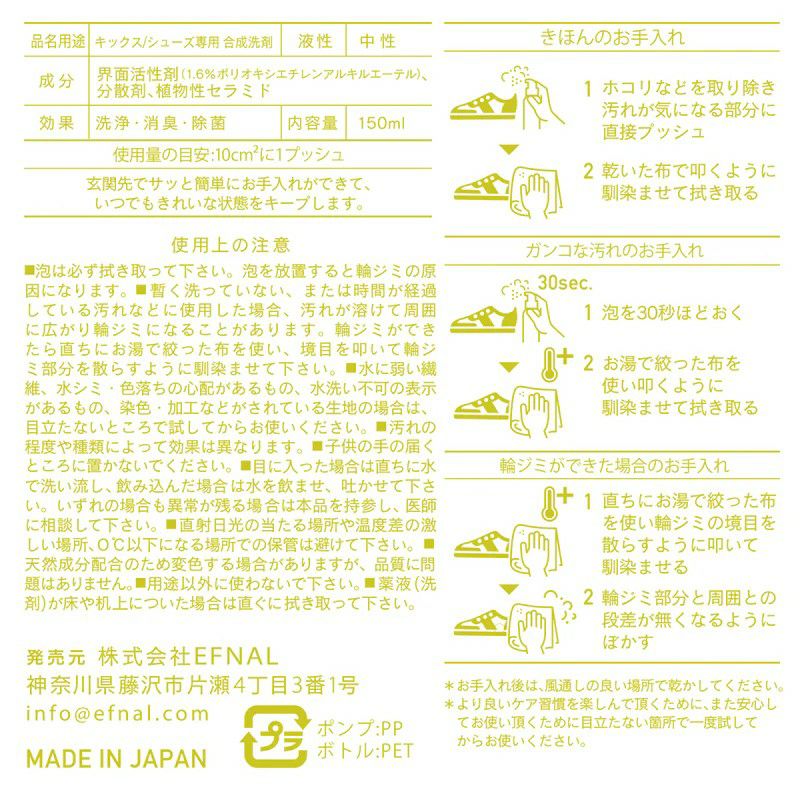 他の画像を見る すぐ汚れる靴のお悩みも、これ1本であっさり解決! 【EFNAL/イフナル】EFNAL care(SHOES用)・EFCR004 販売価格 ¥ 3,300 税込 カートに入れる お気に入りに登録する
