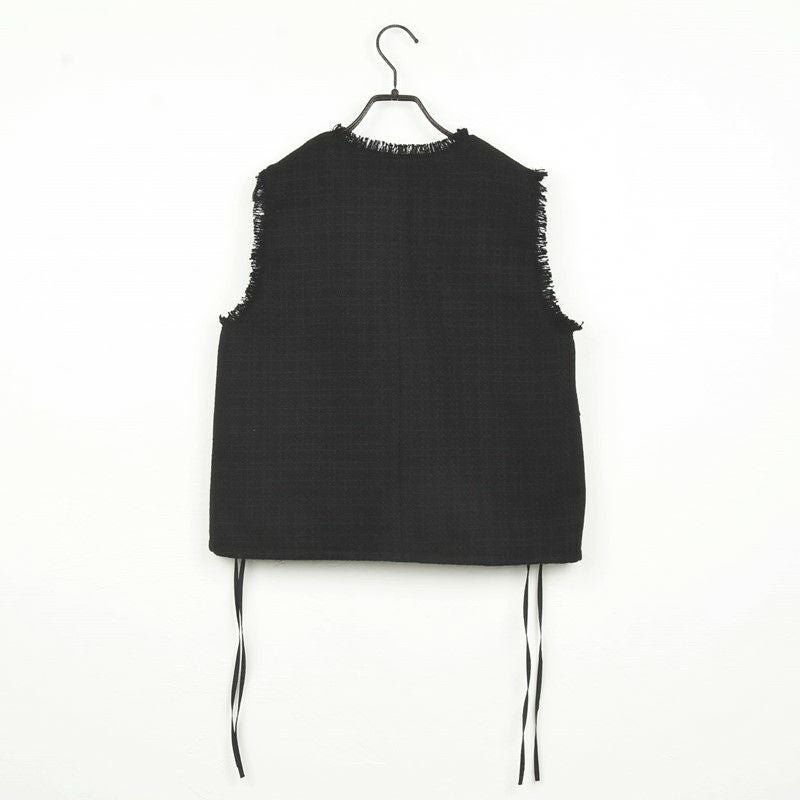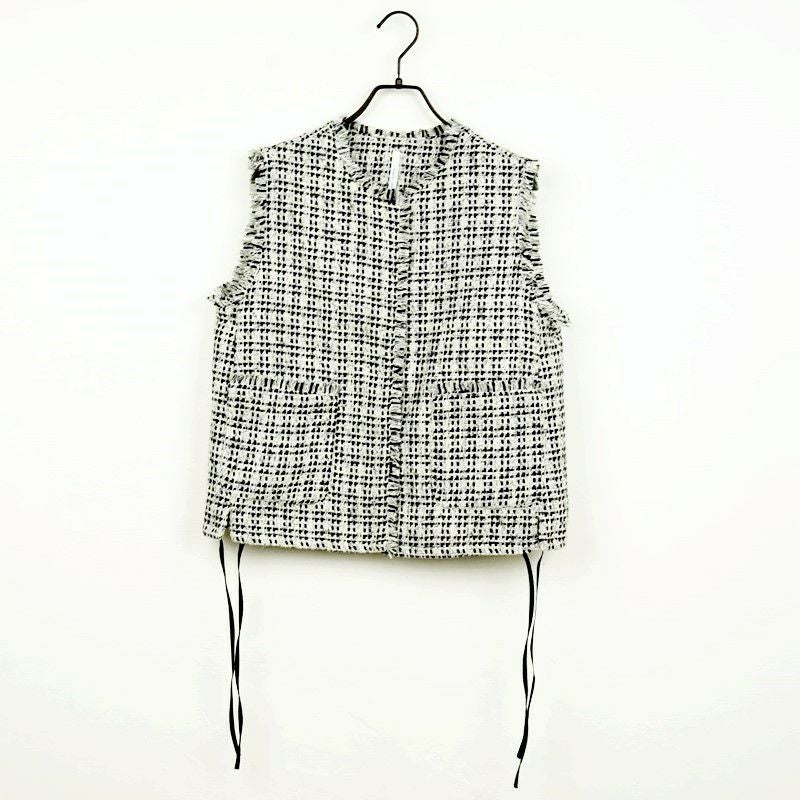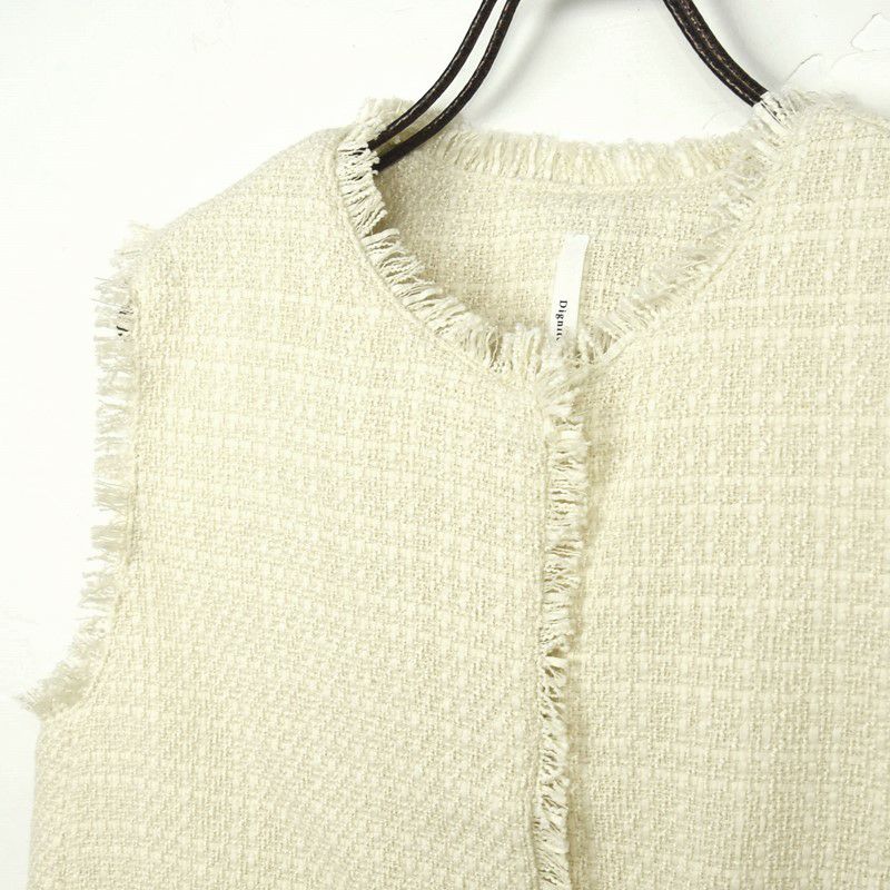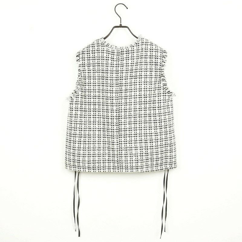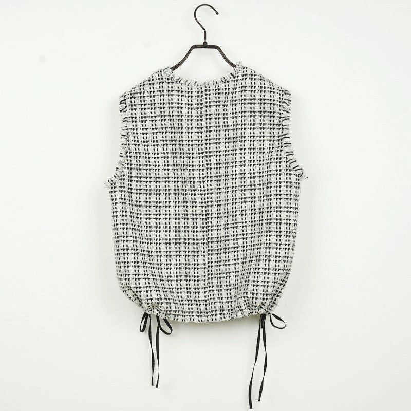 他の画像を見る WHT BLK サイドのリボンで裾を絞れるコンパクトツィードベスト 【Dignite collier/ディニテコリエ】ツィードジレ・80254041 販売価格 ¥ 17,600 税込 カートに入れる お気に入りに登録する