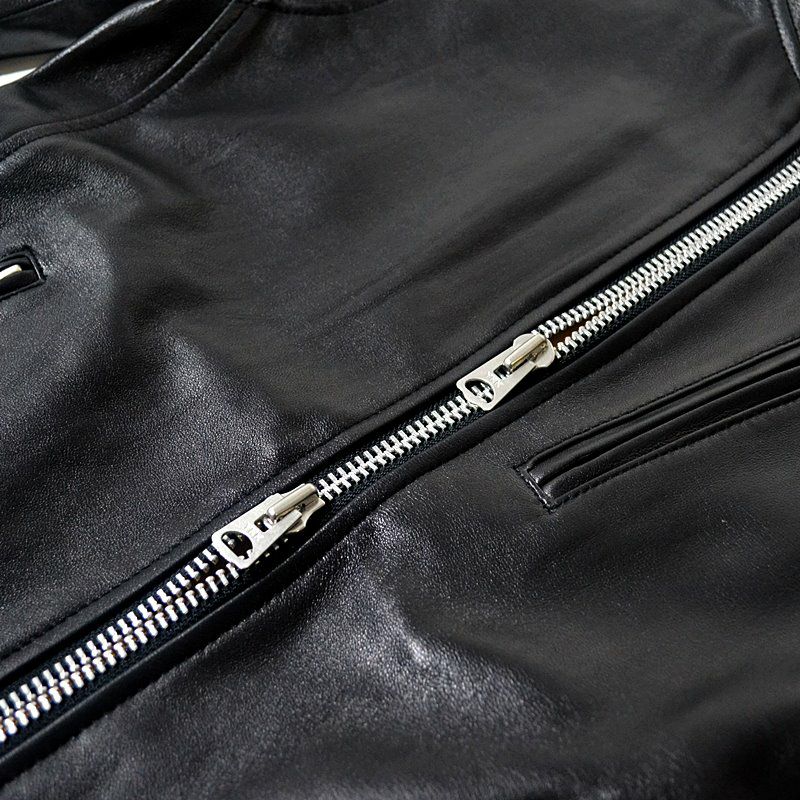 シープレザーで柔らかい着心地と、光沢感を抑えたソフトな質感がいつものスタイリングを一気に大人クールな雰囲気に導いてくれます。