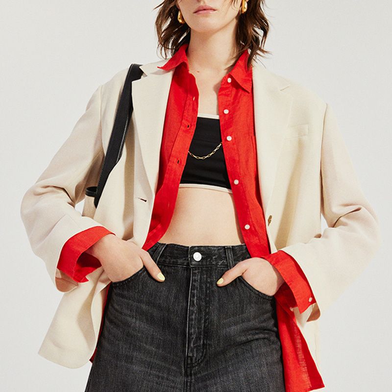 風合いがよく、清涼感のある最高級のフレンチリネンを使用。シワ感やネップ感がナチュラルな雰囲気で、肌に張り付きにくく快適です。