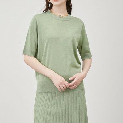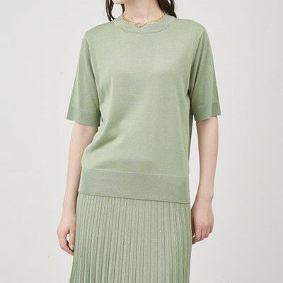 大人しすぎず、大胆過ぎない、絶妙なラメ感にこだわって仕上がっています。シンプルなデザイン、コンパクトなシルエットは合わせるボトムを選ばずバランスがとりやすいです。デニムを合わせてカジュアルにも、きれい目ボトムスで上品にも着られます。