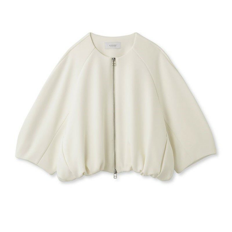 emmiで人気のダンボールニット素材のノーカラーブルゾン。裾にボリュームを出したバルーンデザインがポイント。