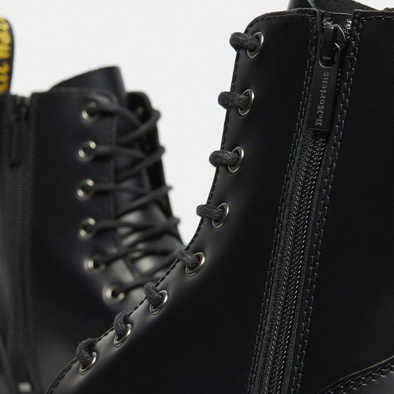 ドクターマーチンの定番8ホールブーツと厚底ソールを組み合わせた「ジェイドン」は、ボリュームのあるシルエットが特徴。