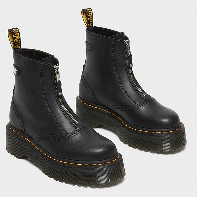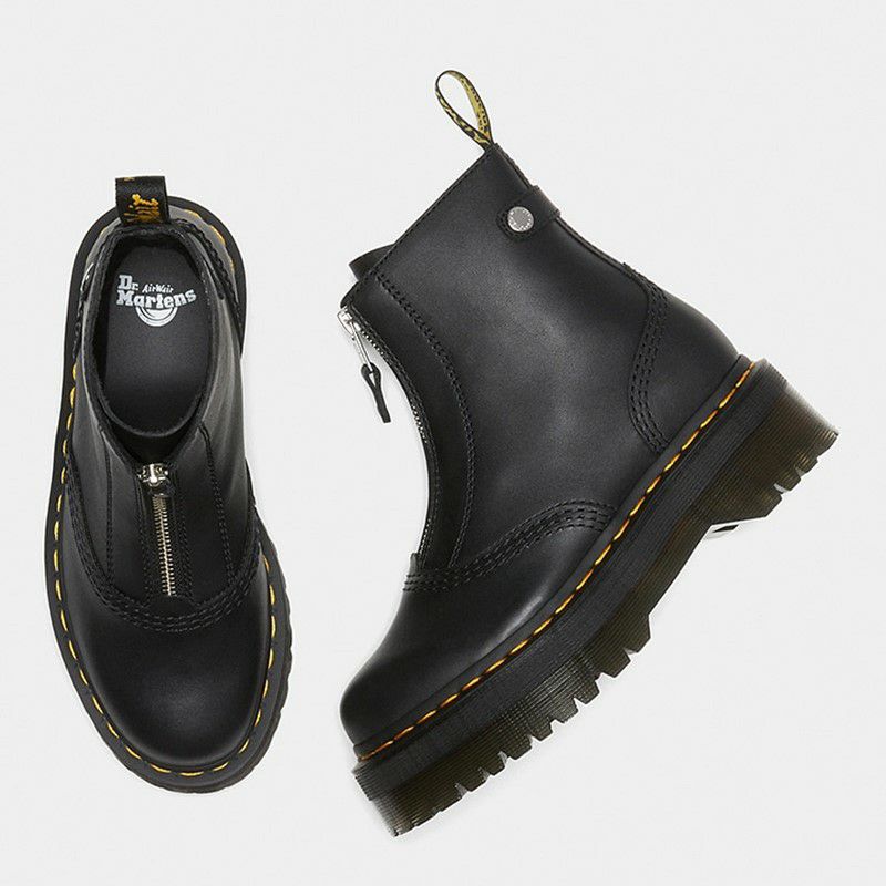 ブーツの履き口にはドクターマーチンのアイコニックなヒールループを取り付けて、ウェルトにはイエローステッチを施して仕上げられています。