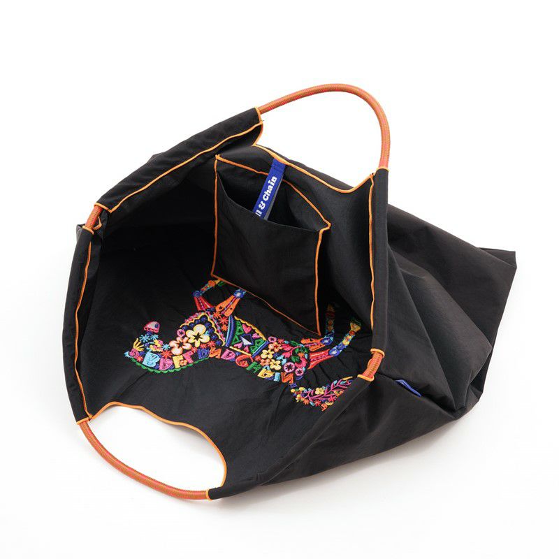 新色追加されました。 Ball and Chainは大切に使い続けたいと思える優れた デザインのショッピングバッグです。 耐久性、撥水性に優れた厚手のポリエステル素材に、 グラフィックデザインをそのまま「刺繍」で施すことで、 高級感がありデザイン性の高いバッグとなっています。 丸く折りたたみ付属のゴムバンドでとめると手のひらほどの コンパクトサイズになるため、持ち運びにも便利です。 普段のお買い物はもちろん、エコなプレゼントとしてもおススメです。