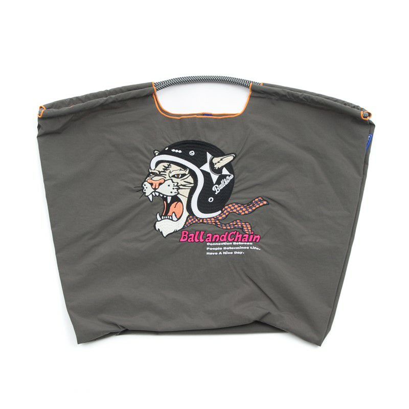 Ball and Chainは大切に使い続けたいと思える優れた デザインのショッピングバッグです。 耐久性、撥水性に優れた厚手のポリエステル素材に、 グラフィックデザインをそのまま「刺繍」で施すことで、 高級感がありデザイン性の高いバッグとなっています。 丸く折りたたみ付属のゴムバンドでとめると手のひらほどの コンパクトサイズになるため、持ち運びにも便利です。 普段のお買い物はもちろん、エコなプレゼントとしてもおススメです。