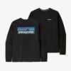 パタゴニア製品の中で最もカーボンフットプリントを抑えた長袖Tシャツに定番のグラフィックロゴをプリント。