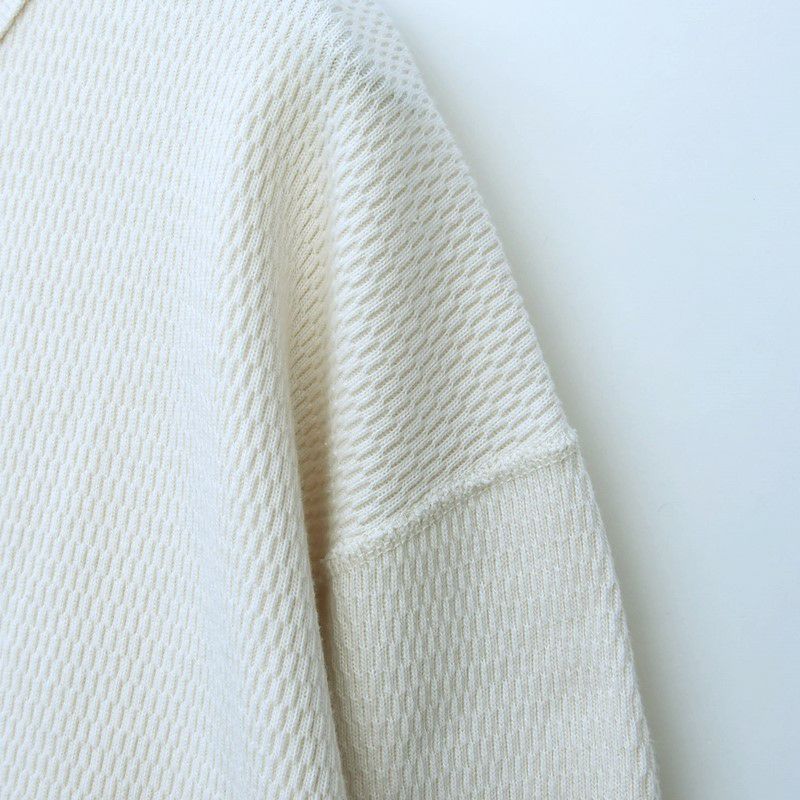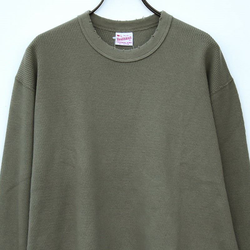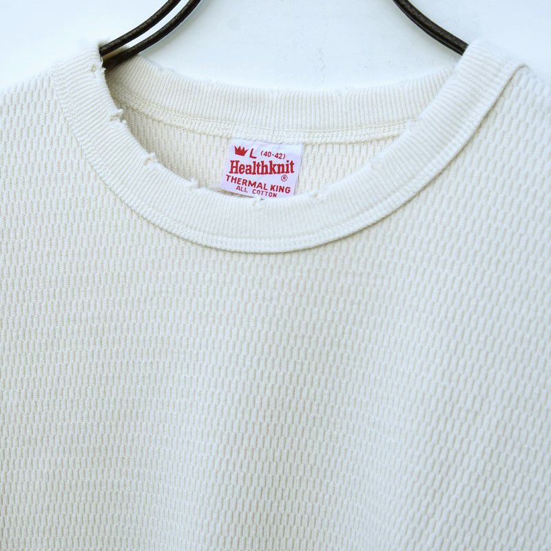 サーマルキングワッフルを現代にアップデートした生地を使用したサーマルキング ラッセル ハニカム クルーネックは、まるで蜂の巣のような立体的な編み地が最大の特徴。