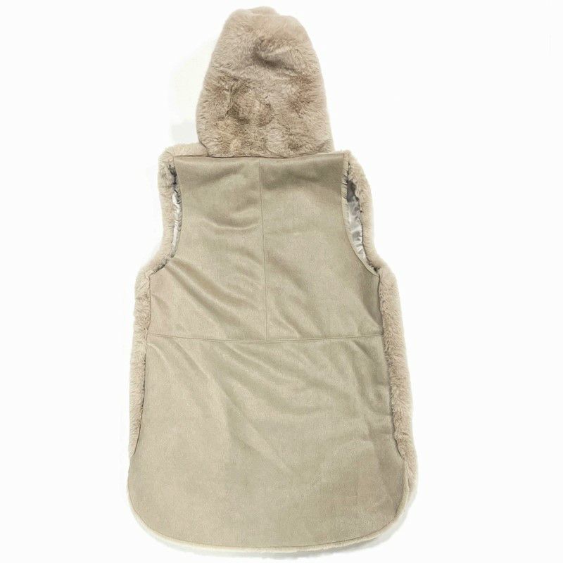 フロントがファー、バックがフェイクムートンと前後で切り替えしデザインになっており、ファーベストあるあるの着ぶくれも気になりません。