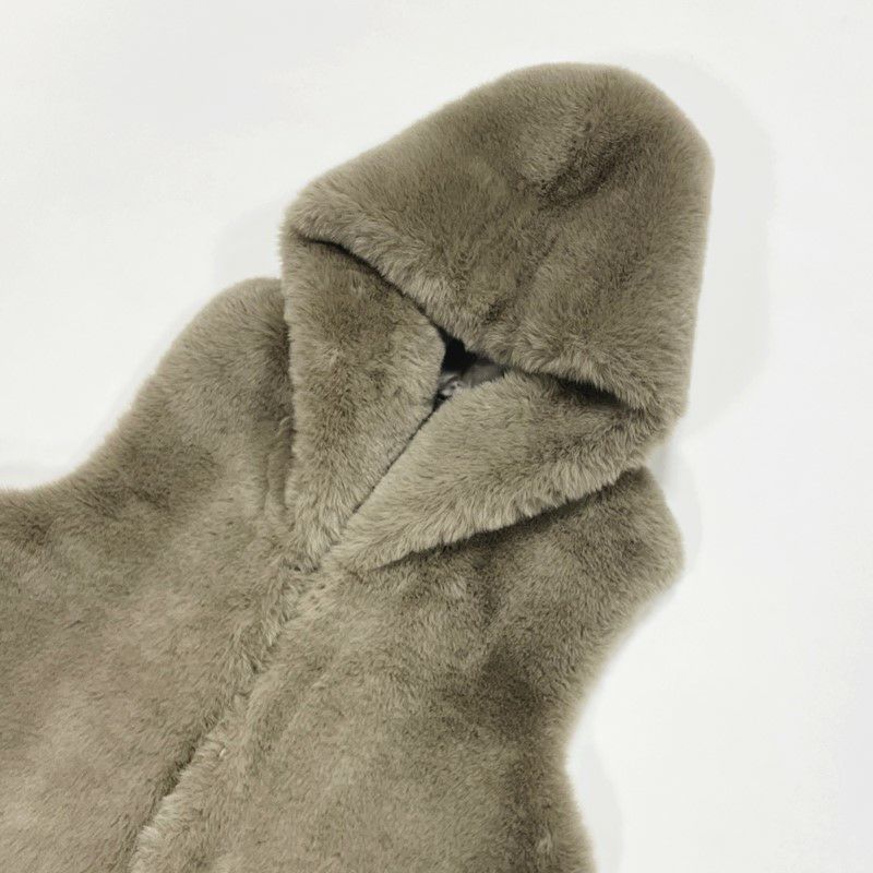 フード部分のファーが首周り、顔周りを華やかな印象にしてくれます。