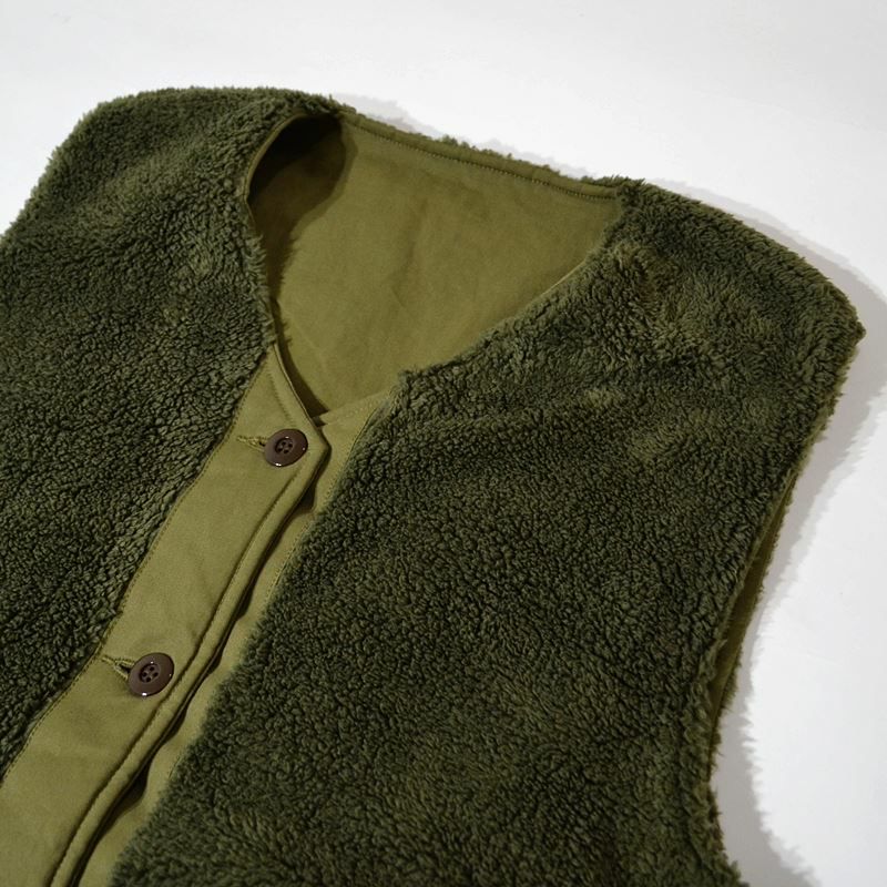 表裏で異なった素材感で雰囲気の全く違うデザインを楽しめるリバーシブル仕様のベスト。
