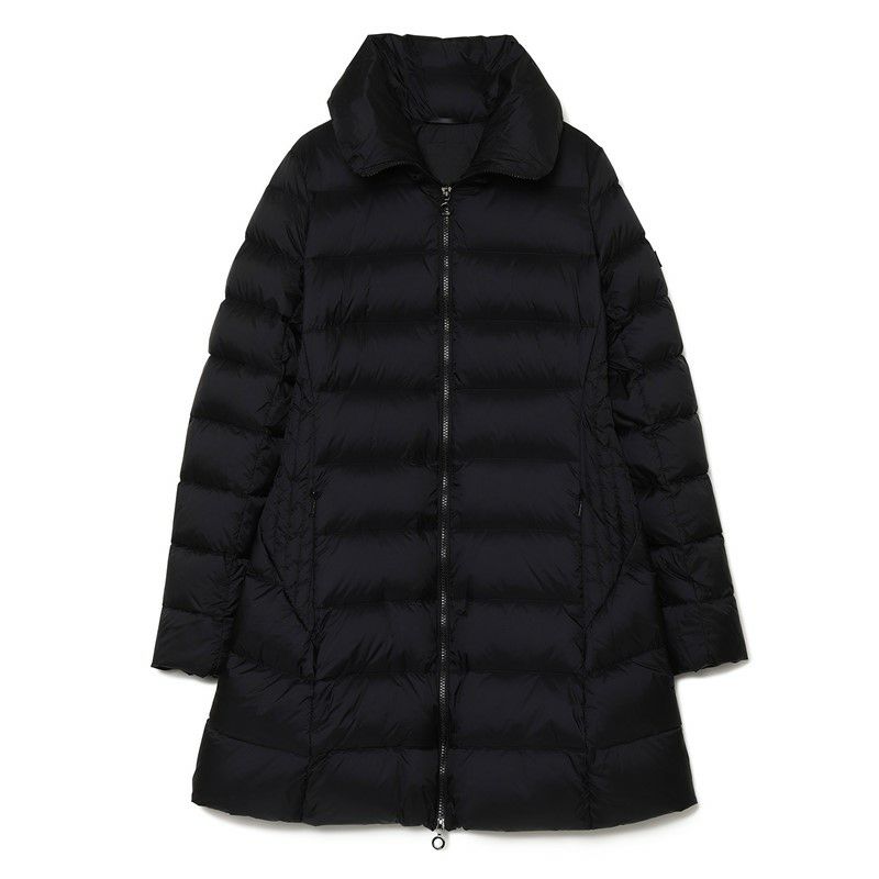 落ち着き感のある上質な光沢とソフトな風合いが魅力のミドル丈のダウンコートは、シンプルなデザインンを活かしてシルエットに徹底的にこだわったアイテム。