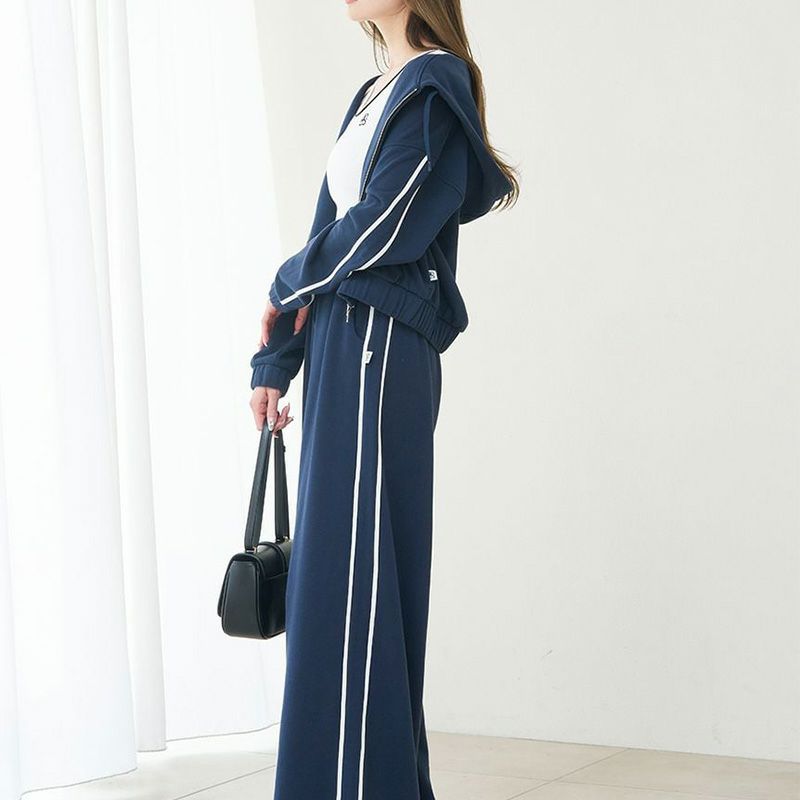 落ち感のある柔らかなスウェット生地でお作りしたスウェットワイドパンツです。