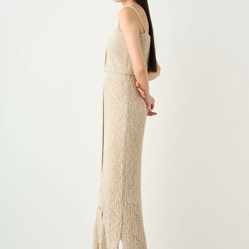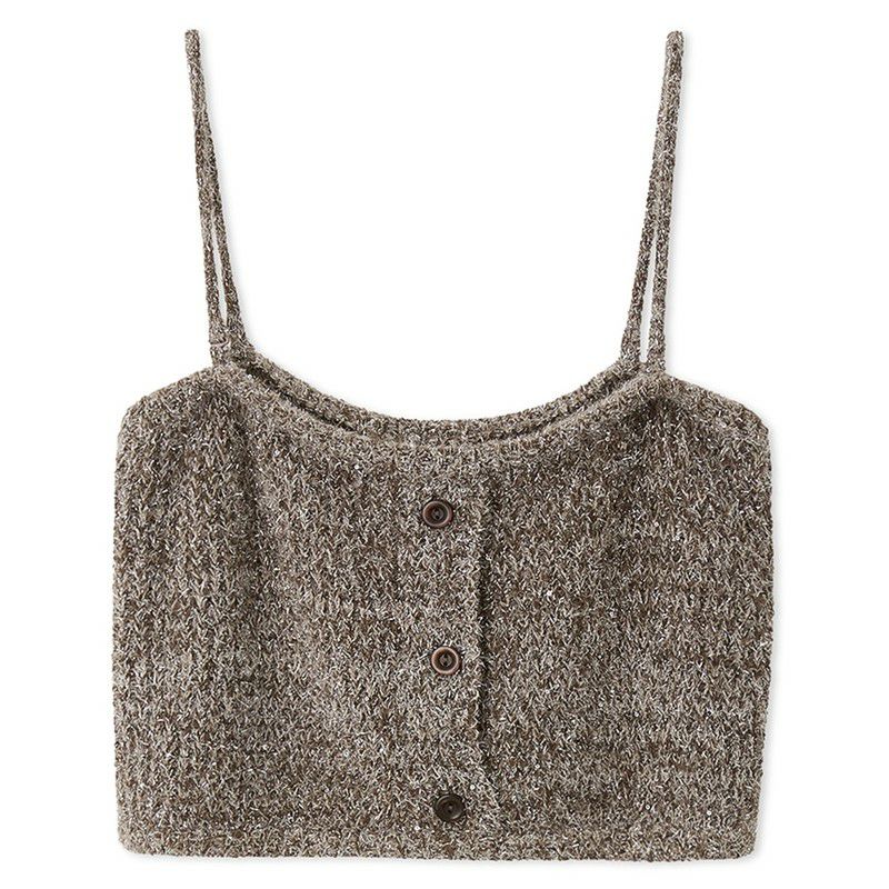 メランジのような配色の糸や、キラキラフィルム糸を使ったファンシーヤーンで編み上げた華やかなベアトップが登場。