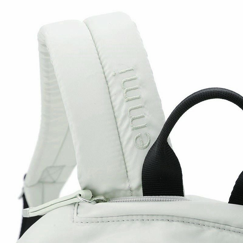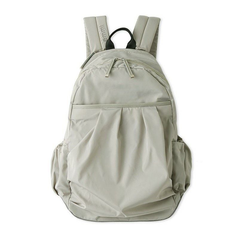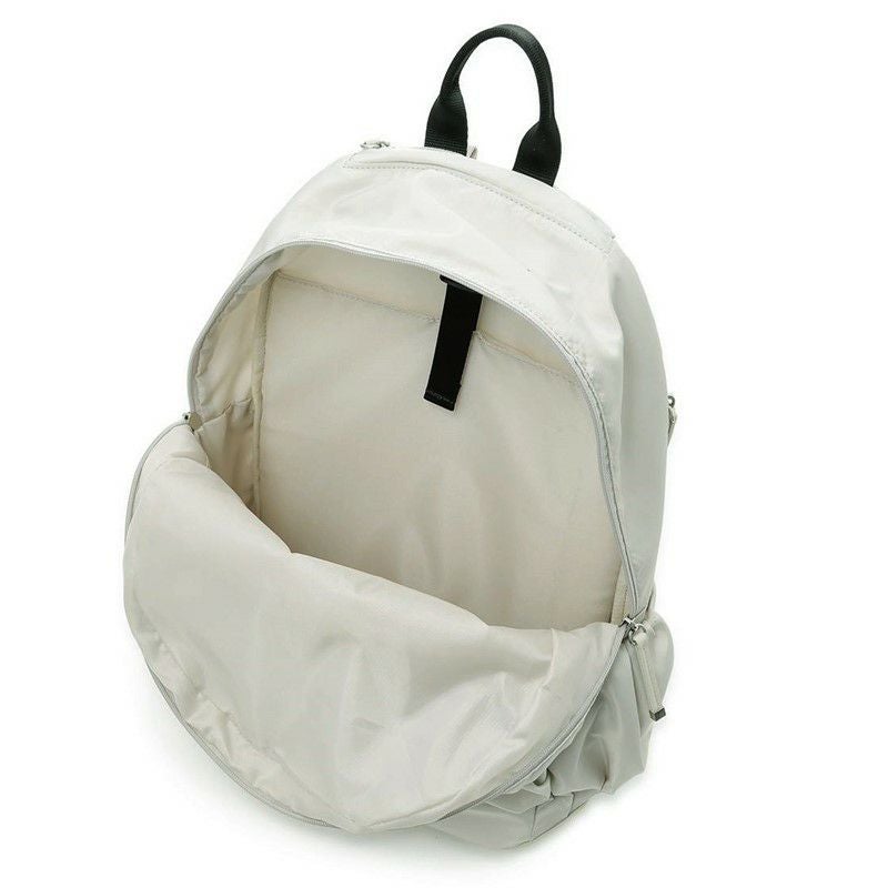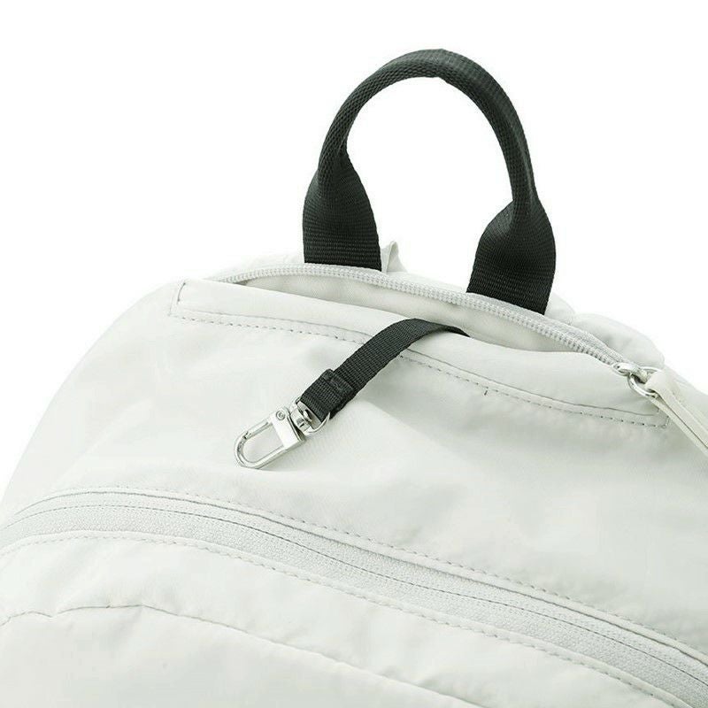 ナイロンはリサイクルポリエステルを使用。ショルダーのクッションを厚く、太くして肩の負担を減らす工夫も施しています。また、背面にはキャリーケースの持ち手に取り付けられるようにバンドが新たに追加されました。より様々なシーンで便利に使えるようになりました。