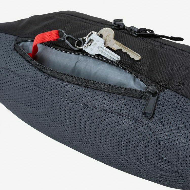 財布や携帯電話など、日常の身の回りの小物の収納に便利な3L容量のスリムなウエストバッグ。